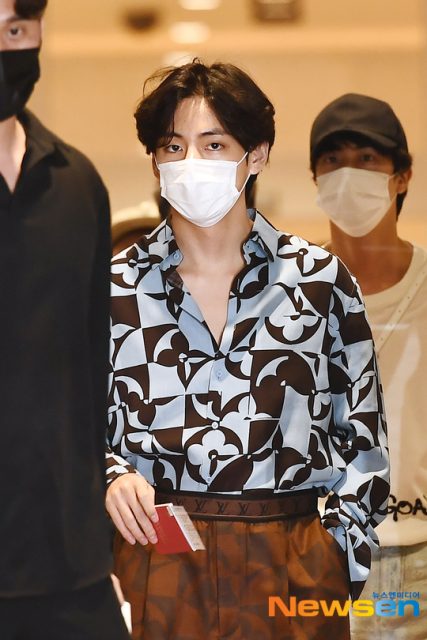 これから飛行機に乗るの?っていうぐらいドレッシーなスタイルに見えたテテファッション。ごめんなさい、探せませんでした。でも間違いなくLV(ルイヴィトン)なのは分かります!