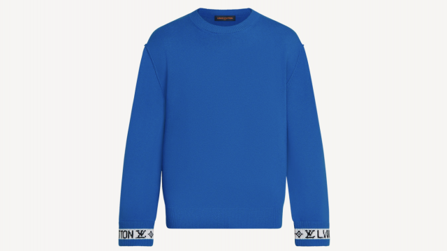 【新着】【中古】LOUIS VUITTON(ルイヴィトン) LVカフスカシミヤクルーネック 長袖セーター 21AW ブルー×白×黒