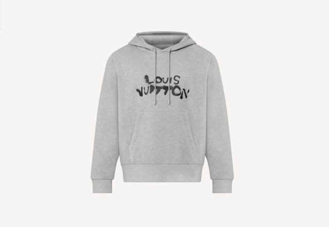 これから飛行機に乗るには抜群の着心地だと思うLVのグレーのパーカー。